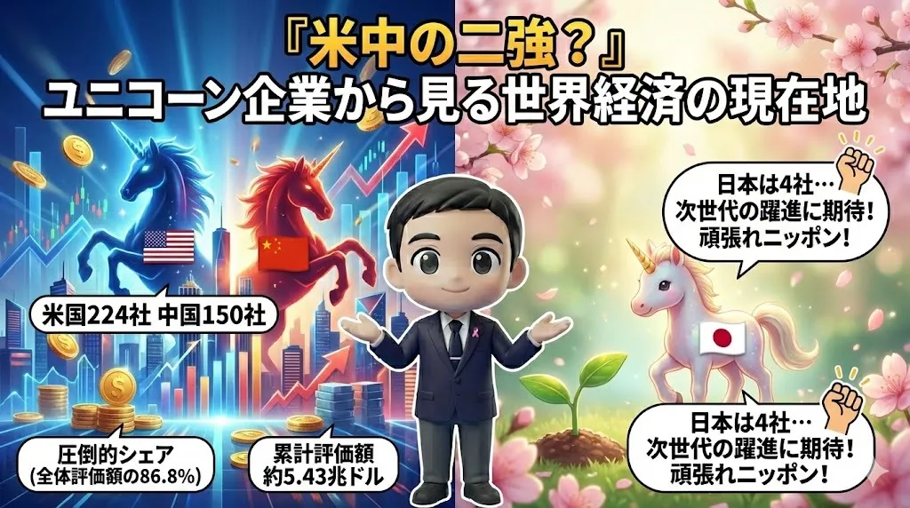 『米中の二強?』ユニコーン企業から見る世界経済の現在地 こんにちは!IT系ファイナンシャルプランナー工藤です♪創業10年以内で企業価値10億ドル以上の未上場企業、いわゆる「ユニコーン企業」。昨年末に発表された「2025年版世界ユニコーン企業ランキングTOP500…